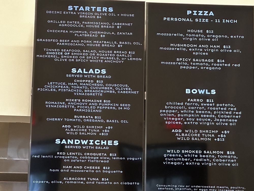 chilled farro (ancient grain), sweet potato, broccoli, Controne beans, pickled red onion, pumpkin seeds, shoyu, togarashi, nori, Decimi extra virgin olive oil
